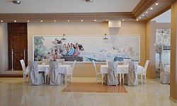 Στα 2 εστιατόρια που προσφέρουν μενού a la carte ή επιλογές μπουφέ, θα απολαύσετε εκλεκτό κρασί και κουζίνα με αυθεντικές ελληνικές γεύσεις. Στο μπαρ της πισίνας σερβίρονται ποτά και καφές, ενώ κατά την άφιξη προσφέρεται κοκτέιλ καλωσορίσματος. Στις εγκαταστάσεις λειτουργεί μίνι μάρκετ με προϊόντα καπνού, εφημερίδες και άλλα είδη καθημερινής χρήσης.
