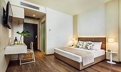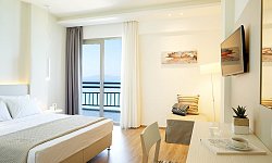 Όλα τα δωμάτια διαθέτουν ιδιωτικό μπαλκόνι με θέα τη θάλασσα ή τον κήπο και είναι εξοπλισμένα με κλιματισμό, δορυφορική τηλεόραση LED 32,ψυγειο ή mini bar, στεγνωτήρα μαλλιών και χρηματοκιβώτιο (χωράει laptop).