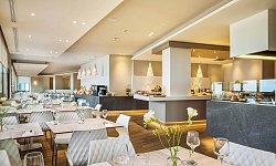 Το εστιατόριο του ξενοδοχείου σερβίρει πρωινό και βραδινό σε πλούσιο μπουφέ με παραδοσιακά ελληνικά πιάτα, από φρέσκα τοπικά προϊόντα. Το Fresco Bio Healthy μπαρ της πισίνας διαθέτει ροφήματα και φαγητό βασισμένα στην υγιεινή διατροφή. Το Greco’s sea food a la carte εστιατόριο, έχει υψηλή κουζίνα με θαλασσινά.
