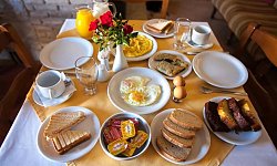 Το πρωινό σερβίρεται στην τραπεζαρία ή στα διαμερίσματα. Παραδοσιακά, σπιτικά γεύματα παρέχονται κατόπιν αιτήματος, ενώ προσφέρεται και δωρεάν σπιτικό κρασί.