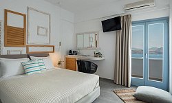 Τα δωμάτια του ξενοδοχείου Caldera Romantica είναι φωτεινά και διακοσμημένα σε παραδοσιακό κυκλαδίτικο στυλ. Όλα περιλαμβάνουν τηλεόραση, θυρίδα ασφαλείας και στεγνωτήρα μαλλιών. Από την επιπλωμένη βεράντα σας μπορείτε να θαυμάσετε τη θέα στην πισίνα, στον κήπο ή στην καλντέρα.
