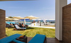 - Ομπρέλες και ξαπλώστρες στην παραλία και στην πισίνα