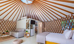 Ανάμεσα στις πισίνες, την ονειρεμένη τεράστια παραλία και τα γήπεδα για αθλητικές δραστηριότητες, οι Cabanas και τα Yurts αποτελούν τον ιδανικό τύπο καταλύματος για οικογένειες και ζευγάρια που θέλουν να έχουν μια ξέγνοιαστη διαμονή σε άμεση επαφή με τη φύση.