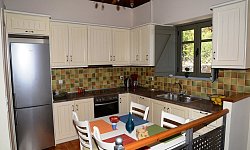 - Πλήρως εξοπλισμένη κουζίνα με φούρνο, εστίες, μεγάλο ψυγείο, καφετιέρα, βραστήρα, τοστιέρα, σερβίτσια, σκεύη κουζίνας