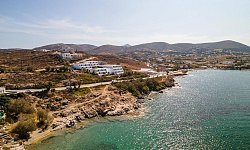 Ξακουστή για την παραδοσιακή κυκλαδίτικη αρχιτεκτονική της, τις κάτασπρες μικρές εκκλησίες και την φιλοξενία των ανθρώπων της. Το ξενοδοχείο απέχει 50μ. από την παραλία, παρέχει δωρεάν ιδιωτικό χώρο στάθμευσης, ενώ ακριβώς δίπλα υπάρχει στάση λεωφορείου. Μπορείτε να απολαύσετε την όμορφη θέα στη θάλασσα από το ιδιωτικό σας μπαλκόνι. Όλα τα δωμάτια διαθέτουν μίνι ψυγείο και τηλεόραση. Παρέχεται καθημερινή υπηρεσία καθαρισμού. Ο μπουφές πρωινού σερβίρεται στο εστιατόριο του τελευταίου ορόφου του Hotel Hippocampus, με θέα στον κόλπο της Νάουσας και τις Κολυμπήθρες.