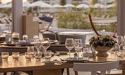 Το ανεπιτήδευτο στυλ συνεχίζεται στα εστιατόρια και μπαρς του ξενοδοχείου πάνω από τις πισίνες και την πλήρως οργανωμένη παραλία, με τις μοναδικές προτάσεις φαγητού και ποτού αλλά και ενδιαφέροντα events. Η συνολική πρόταση του ξενοδοχείου απευθύνεται στον φιλοξενούμενο που θέλει να χαλαρώσει και να αποβάλει την ένταση της ζωής, σε ένα θέρετρο στην καρδιά μιας ολοζώντανης πόλης.