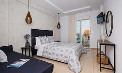 Το Οικογενειακό Studio 1 έχει συνολικό εμβαδόν 35 τετραγωνικών μέτρων, και βρίσκεται στο ισόγειο. Αποτελείται από μια μικρή κουζίνα και 2 κρεβατοκάμαρες, WC και ντουζιέρα. Η μια κρεβατοκάμαρα έχει ένα διπλό κρεβάτι και η δεύτερη κρεβατοκάμαρα έχει 2 μονά κρεβάτια. Έχει επίσης επιπλωμένο μπαλκόνι. Παρέχετε καθημερινή καθαριότητα. Οι πετσέτες και τα σεντόνια αλλάζονται κάθε 3 μέρες.