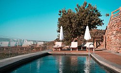 - Η μεγάλη βεράντα και το μπαλκόνι στον όροφο, ειναι το ιδανικό μέρος χαλάρωσης, ατενίζοντας το απέραντο γαλάζιο του Αγαίου και τα χρώματα του δειλινού, από το καλύτερο σημείο του νησιού. Προγραμματίστε τη διαμονή σας σε μια από τις Honeymoon Suites και χαλαρώστε, απολαμβάνοντας ένα δροσιστικό ποτό ή το πρωινό σας με θέα στην πανέμορφη Χώρα, ειναι μια εξαιρετική εμπειρία που αξίζει να τη ζήσετε.