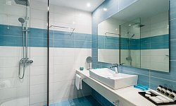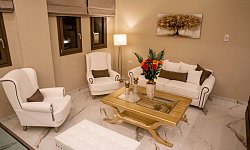 Πουθενά αλλού δεν θα συναντήσετε τέτοιο αρμονικό συνδυασμό χρωμάτων μεταξύ δωματίων, διαδρόμων, αιθουσών, κοινόχρηστων εσωτερικών κι εξωτερικών χώρων. Εκείνο όμως που φροντίσαμε ιδιαίτερα είναι ο κατασκευαστικός και διακοσμητικός εξοπλισμός τους να συνταιριάζουν με την λειτουργικότητα και την άνεση .Όλα τα κομφόρ και οι θέσεις των επίπλων είναι πλήρως μελετημένα για να αποδίδουν λειτουργικά προς διευκόλυνση κι άνεση των πελατών μας , κάθε ηλικίας.