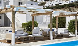 Οι εγκαταστάσεις υψηλής ποιότητας, σε συνδυασμό με την κυκλαδίτικη παράδοση και τη σύγχρονη αρχιτεκτονική, συνθέτουν ένα ξενοδοχείο σε απόλυτη αρμονία με το φυσικό του περιβάλλον. Όλα τα δωμάτια έχουν εντυπωσιακή θέα στους κήπους και την πισίνα του ξενοδοχείου. Το ξενοδοχείο διαθέτει πισίνα γλυκού νερού, ένα κεντρικό εστιατόριο για μπουφέ πρωινού, ξαπλώστρες όπου μπορείτε να απολαύσετε ένα ελαφρύ μενού σνακ, κοκτέιλ και ποτά.