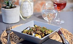 Το εστιατόριο "Ελαιώνας" προσφέρει εξαιρετική ελληνική/κυκλαδική δημιουργική κουζίνα με τοπικά προϊόντα που προέρχονται από τα νησιά του Αιγαίου.