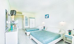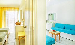 Τα δωμάτια διαθέτουν ιδιωτικό μπαλκόνι με θέα στον κήπο, στη θάλασσα ή στην πισίνα. Είναι εξοπλισμένα με ψυγείο, τηλεόραση και τηλέφωνο.