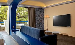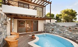 - 107 πολυτελείς Executive & Deluxe Σουίτες όλες εκ των οποίων διαθέτουν μοντέρνα επίπλωση, βεράντες με ξαπλώστρες και παροχές υψηλής ποιότητας. Ορισμένες από τις σουίτες διαθέτουν ιδιωτική πισίνα ή jacuzzi