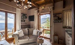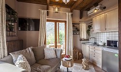 Είναι πλήρως εξοπλισμένο, με τρία διπλά κρεβάτια σε σοφίτα και κρεβατοκάμαρα, ένα μπάνιο με υδρομασάζ, ένα wc, ευήλιο καθιστικό με κουζίνα, δύο μπαλκόνια και μια υπέροχη βεράντα με θαυμάσια θέα στο μαντείο των Δελφών, την Ιτέα, τα γύρω βουνά...