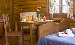 Διαμονή στο Sfendamos Wood Village στον Άγιο Παύλο Νάουσας, σε ξύλινα σαλέ κατασκευασμένα από κορμούς ελάτων μέσα σε ένα κατάφυτο περιβάλλον από οξυές, έλατα και σφένδαμους σε υψόμετρο 1300 μέτρων!