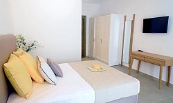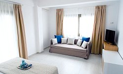 Όλα τα δωμάτια διαθέτουν μπαλκόνι με θέα στην πισίνα ή τους κήπους.