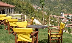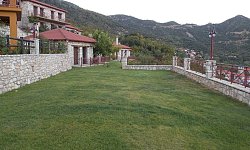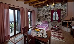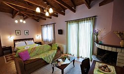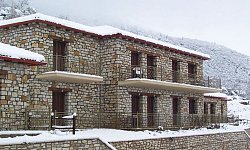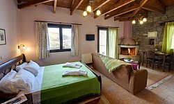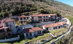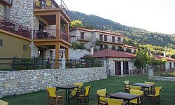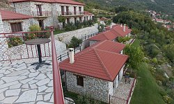 Τα μεγάλα μπαλκόνια, με τραπέζι και καρέκλες, προσφέρουν εκπληκτική θέα στο χωριό και τα γύρω βουνά. Ο ξενώνας λειτουργεί όλο τον χρόνο, προσφέροντας μια εξαιρετική επιλογή για όσους αναζητούν μια απόδραση από την καθημερινότητα σε ένα γραφικό και ιστορικό ορεινό χωριό.