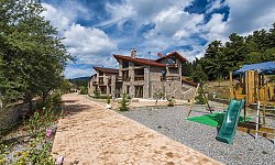 Δέκα Chalet από 80 έως 200 τ.μ. που χαρακτηρίζονται από την υψηλή ποιότητα κατασκευής, με κυρίαρχα υλικά το ξύλο και την πέτρα.