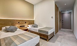 Διαθέτει 195 δωμάτια, δίκλινα, τρίκλινα και οικογενειακά, όλα εξοπλισμένα με αυτόνομο κλιματισμό, δορυφορική τηλεόραση 32 ιντσών, μίνι ψυγείο, βραστήρα, τηλέφωνο, μπάνιο με ντουζιέρα και στεγνωτήρα μαλλιών, θυρίδα δωματίου, δωρεάν WiFi, μπαλκόνι ή βεράντα. Ορισμένα έχουν δυνατότητα εξυπηρέτησης ΑΜΕΑ.