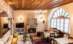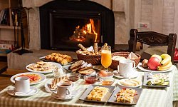 Πρωινό, σπιτικά γλυκά και τοπικά ποτά σερβίρονται στο lounge, δίπλα στο τζάκι. Διατίθεται δωρεάν Wi-Fi.