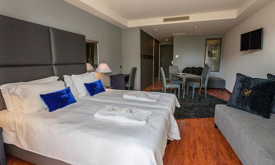 Ένα μοναδικό στολίδι αρχιτεκτονικής με ιδιαίτερο στυλ, που σας παρέχει τις απόλυτες υπηρεσίες που μόνο ένα ξενοδοχείο 4* (τεσσάρων αστέρων) μπορεί. Στο χώρο του ξενοδοχείου μας θα απολαύσετε παροχές υψηλής ποιότητας όπως γυμναστήριο, spa, massage, πισίνα, σάουνα και υδρομασάζ. Η διαμονή σας θα γίνει εδώ μια μοναδική, ονειρική εμπειρία. Όλες οι σουίτες του ξενοδοχείου, έχουν διακοσμηθεί η κάθε μία με ξεχωριστό, προσωπικό ύφος ενώ οι πλούσιες παροχές και υπηρεσίες θα σας χαρίσουν ιδιαίτερες στιγμές πολυτέλειας.