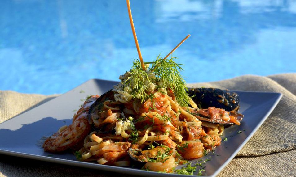 Το εστιατόριο "Ελαιώνας" προσφέρει εξαιρετική ελληνική/κυκλαδική δημιουργική κουζίνα με τοπικά προϊόντα που προέρχονται από τα νησιά του Αιγαίου.
