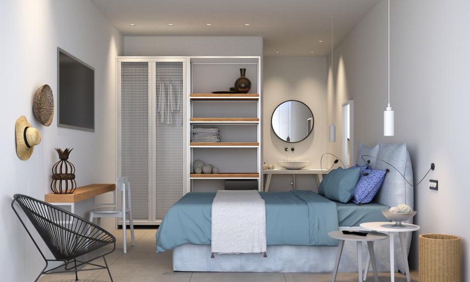 Τα φωτεινά δωμάτια είναι κτισμένα σύμφωνα με την παραδοσιακή κυκλαδίτικη αρχιτεκτονική. Όλες οι μονάδες είναι πλήρως κλιματιζόμενες και περιλαμβάνουν ανατομικά στρώματα, τηλεόραση και ψυγείο, καθώς και θυρίδα ασφαλείας και στεγνωτήρα μαλλιών. Παρέχεται δωρεάν Wi-Fi στο lounge του ξενοδοχείου. Οι επισκέπτες λαμβάνουν δωρεάν ποτό καλωσορίσματος κατά την άφιξή τους.