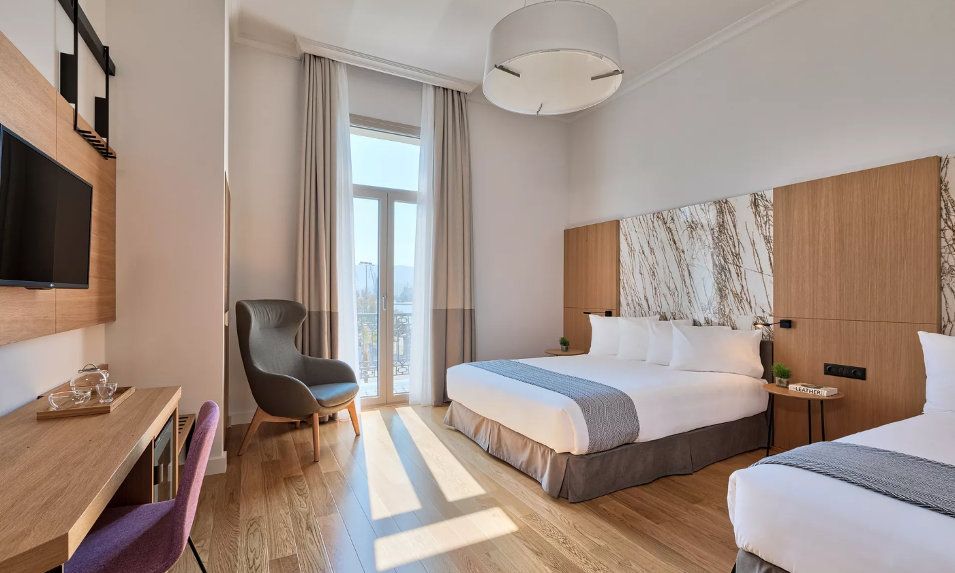 Το ξενοδοχείο διαθέτει 75 δωμάτια, εκ των οποίων 6 πολυτελείς σουίτες, τα οποία έχουν ανακαινιστεί πλήρως το 2002 και το 2011 και είναι εξοπλισμένα με ατομικό μπάνιο με πιστολάκι μαλλιών, κεντρική θέρμανση, ατομικό κλιματισμό, τηλεόραση, δορυφορική τηλεόραση, mini-bar και όλα τα είδη προσωπικής χρήσης.