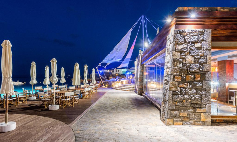 Οι επισκέπτες μπορούν να απολαύσουν γεύματα στο ύπαιθρο, θαυμάζοντας τη θέα στην πισίνα και την πανοραμική θέα στον κόλπο του Μιραμπέλλου. Το Thalassa Waterfront Restaurant του ξενοδοχείου σερβίρει διάφορους θαλασσινούς μεζέδες, ενώ το Aretoussa Restaurant ειδικεύεται στην ελληνική και τη διεθνή κουζίνα.