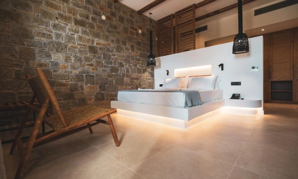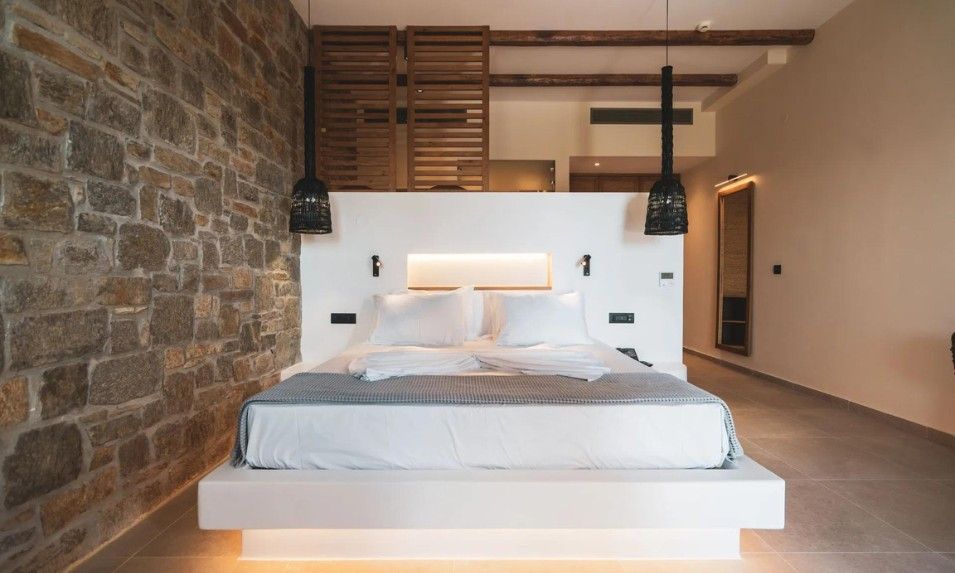 Τα πολυτελή έπιπλα, οι φυσικοί τόνοι με ζεστές πινελιές ξύλου και πέτρας δημιουργούν μια οργανική αίσθηση ηρεμίας. Μπορεί να είναι μια ρομαντική απόδραση, μια οικεία οικογενειακή γιορτή ή παρέα με αγαπημένους φίλους, κάθε στιγμή γίνεται μοναδική με τη φιλοξενία της ομάδας μας. Όλοι οι δημόσιοι και ιδιωτικοί χώροι του Kouros Blanc προκαλούν ένα πνεύμα που συνδέει τους επισκέπτες με τη γήινη ψυχή του τοπίου και την ομορφιά της Πάρου.