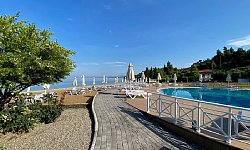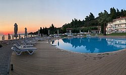 Η πισίνα (γλυκού νερού) βρίσκεται ανάμεσα στους κήπους με την μεσογειακή βλάστηση & δίπλα από την οργανωμένη παραλία με ξαπλώστρες & ομπρέλες.