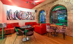 Το ξενοδοχείο διαθέτει ένα μοντέρνο, ζωηρόχρωμο μπαρ με άνετες πολυθρόνες και επιτραπέζια παιχνίδια ενώ το πλούσιο πρωινό σε μπουφέ σερβίρεται στο αίθριο δίπλα στο μπαρ.