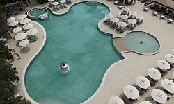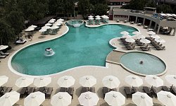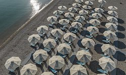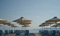 - Ξαπλώστρες, ομπρέλες και πετσέτες στις πισίνες και την παραλία