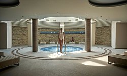 - Εσωτερική θερμαινόμενη πισίνα με υφάλμυρο νερό (18 X 5m)