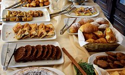 Οι επισκέπτες μπορούν να ξεκινήσουν τη μέρα τους με σπιτικό πρωινό που σερβίρεται καθημερινά στην τραπεζαρία. Στο εστιατόριο των εγκαταστάσεων μπορείτε να απολαύσετε παραδοσιακές τοπικές γεύσεις και άλλα μεσογειακά πιάτα, για μεσημεριανό γεύμα ή δείπνο.