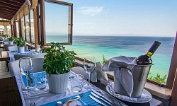 Στους χώρους του ξενοδοχείου υπάρχει εστιατόριο όπου μπορείτε να απολαύσετε το πλούσιο πρωινό και τις απογευματινές ώρες το δείπνο, επιλέγοντας μεσογειακές γεύσεις από το μπουφέ, συνοδεία επιλεγμένων κρασιών από την κάβα μας. Από τις 13.00 - 21.00 λειτουργεί το εστιατόριο Βεράντα με φόντο το απέραντο γαλάζιο. Κατά τη διάρκεια της ημέρας αλλά και της νύχτας μπορείτε να απολαύσετε το ποτό σας στο bar ή στην πισίνα.