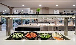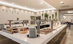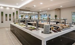 Οι επισκέπτες επωφελούνται, επίσης, από ένα μεγάλο εστιατόριο με μπουφέ, ένα μπαρ κι ένα σνακ μπαρ, όπου μπορούν να δοκιμάσουν τοπικές λιχουδιές και διεθνή κουζίνα αλλά και να απολαύσουν κρασιά, μπύρες και κοκτέιλ σε προκαθορισμένες ώρες κάθε μέρα. Μια πισίνα για ενήλικες και δύο πισίνες για παιδιά πρωταγωνιστούν στους εξωτερικούς χώρους του ξενοδοχείου. Ξαπλώστρες, ομπρέλες και νεροτσουλήθρες προσφέρουν χρόνο για χαλάρωση και διασκέδαση σε όλους τους επισκέπτες.