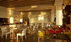 Το εστιατόριο των εγκαταστάσεων σερβίρει ευρωπαϊκό πρωινό, καθώς και ελληνικά και μεσογειακά πιάτα. Στο μπαρ του ξενοδοχείου μπορείτε να απολαύσετε δροσιστικά ποτά, καφέδες και κοκτέιλ.