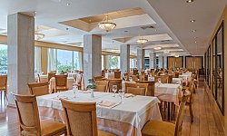 Σε ένα χαλαρό και ανοιχτό χώρο με εκπληκτική θέα στους βράχους των Μετεώρων, μπορείτε να απολαύσετε το πρωινό, το μεσημεριανό γεύμα ή το δείπνο σας. Ο σεφ του ξενοδοχείου προτείνει ποικιλία από τοπικά και διεθνή πιάτα, καθώς και διάφορα κρασιά.