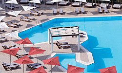 - Ξαπλώστρες στην πισίνα και στην παραλία