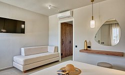 Τα ευρύχωρα, κλιματιζόμενα δωμάτια και οι μεζονέτες του Georgioupolis Resort προσφέρουν μπαλκόνι με θέα στον κήπο, στη θάλασσα ή στα Λευκά Όρη. Όλα περιλαμβάνουν καθιστικό, δορυφορική τηλεόραση, θυρίδα ασφαλείας και ψυγείο.