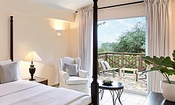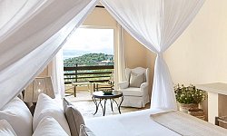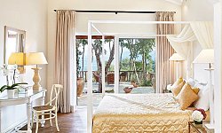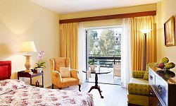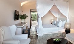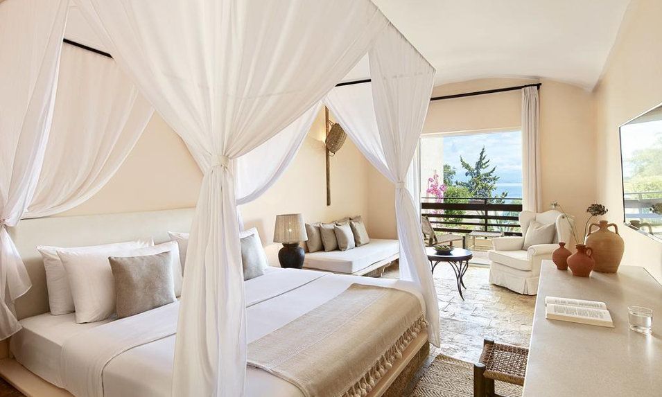 Όλα τα καλά εξοπλισμένα δωμάτια διαθέτουν μπαλκόνι ή βεράντα και δορυφορική τηλεόραση. Τα δωμάτια προσφέρουν θέα στους κήπους και το Ιόνιο Πέλαγος, ενώ τα μπανγκαλόου είναι κρυμμένα μέσα στα ελαιόδεντρα. Το ιδιωτικό μπάνιο έχει ντους ή μπανιέρα και περιλαμβάνει στεγνωτήρα μαλλιών και δωρεάν προϊόντα περιποίησης.