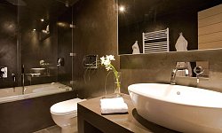 - Τα έπιπλα, ξεχωριστά και ιδιαίτερα, σε συνδυασμό με τους κρυφούς φωτισμούς, δίνουν ένα σύγχρονο και αφαιρετικό αποτέλεσμα. Τα ευρύχωρα μπάνια είναι πλήρως εξοπλισμένα με ανέσεις υψηλής ποιότητας, πετσέτες και μπουρνούζια, ενώ στην πλειονότητά τους προσφέρουν και Jacuzzi. Χαλαρώστε στα εξαιρετικά άνετα king size κρεβάτια και απολαύστε τις μικρές λεπτομέρειες που ομορφαίνουν τη ζωή μας.