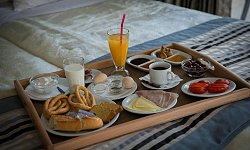 Οι επισκέπτες μπορούν να ξεκινήσουν τη μέρα τους με το πρωινό που αποτελείται από μια καθημερινή γλυκιά ή αλμυρή έκπληξη, φρέσκο ψωμί, σπιτικές μαρμελάδες και κέικ, φρέσκους χυμούς και καφέ ή τσάι και σερβίρεται στα δωμάτιά τους.
