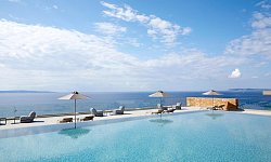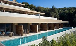 Δροσιστείτε στην μεγάλη πισίνα υπερχείλισης που προσφέρει μαγευτική θέα στο Ιόνιο και είναι εξοπλισμένη με εξωτερικό Jacuzzi, ξαπλώστρες, ομπρέλες και πετσέτες. Οι μικροί μας επισκέπτες μπορούν να διασκεδάσουν στην στεγασμένη ρηχή πισίνα μας. Η ομάδα του pool bar βρίσκεται εκεί για να σας προσφέρει ποτά και σνακς καθ’όλη την διάρκεια της ημέρας.