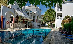 Το ξενοδοχείο μας, παρέχει: 8 διαφορετικούς τύπους δωματίων, στο σύνολο 54, μια ρεσεψιόν, μια εξωτερική πισίνα με υδρομασάζ και παιδική πισίνα, φροντισμένο κήπο, ένα Pool bar, ένα παραδοσιακό ελληνικό εστιατόριο, ένα Βeach bar με παιδική χαρά, ξαπλώστρες & ομπρέλες.