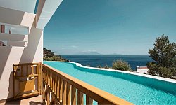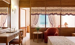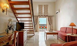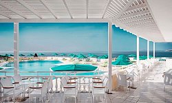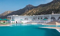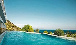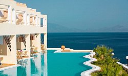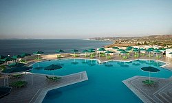 Το ξενοδοχείο διαθέτει 219 ευρύχωρα και superior δωμάτια με κοινόχρηστες πισίνες, μεσογειακό στυλ διακόσμησης και εντυπωσιακή θέα στο Αιγαίο. Στις διαθέσιμες εγκαταστάσεις συγκαταλέγονται πισίνες με θαλασσινό νερό και νεροτσουλήθρες, ένα γήπεδο τένις, μπιτς βόλεϊ, ποδόσφαιρο στην παραλία και διάφορα άλλα αθλήματα και ψυχαγωγικές δραστηριότητες.