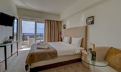 Οι 4 όροφοι του κυρίως κεντρικού κτιρίου, αποτελούνται από 124 δωμάτια με θέα στη θάλασσα ή στο βουνό Όλυμπος και 4 σουΐτες.