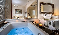 - Exclusive SPA Suite με εσωτερικό και εξωτερικό θερμαινόμενο Jacuzzi και πλευρική θέα στη θάλασσα