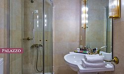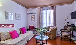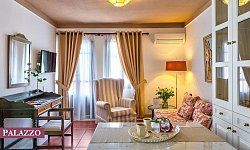 Κάθε σύγχρονη σουίτα έχει διακόσμηση με πολυτελή υφάσματα και δορυφορική τηλεόραση LCD με DVD player.